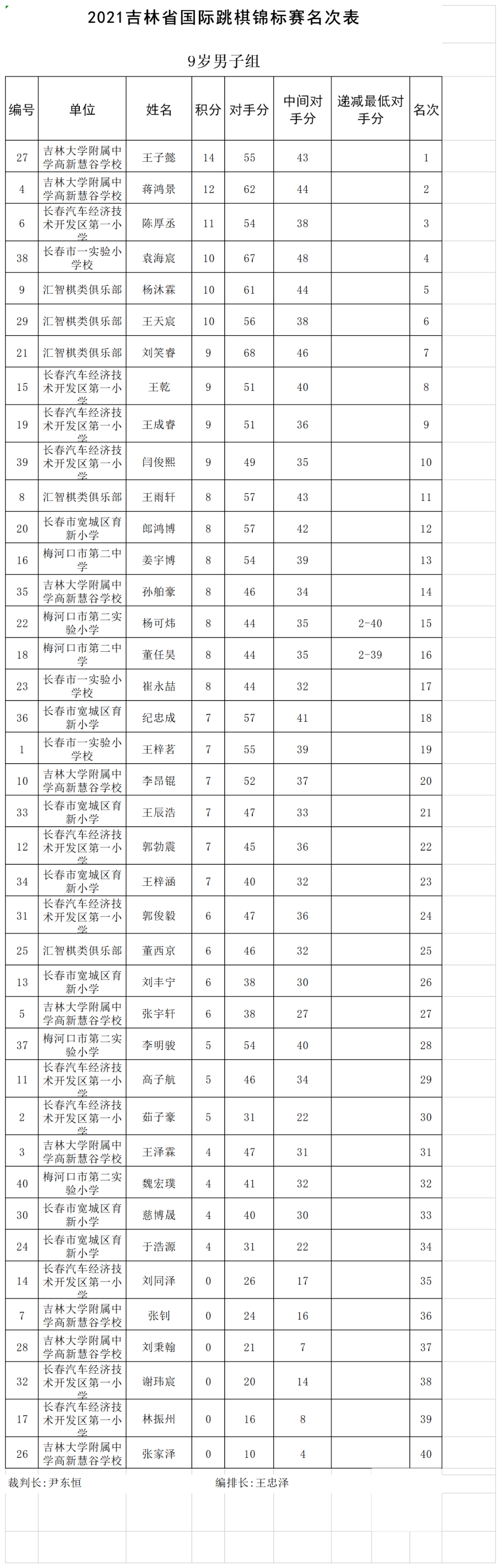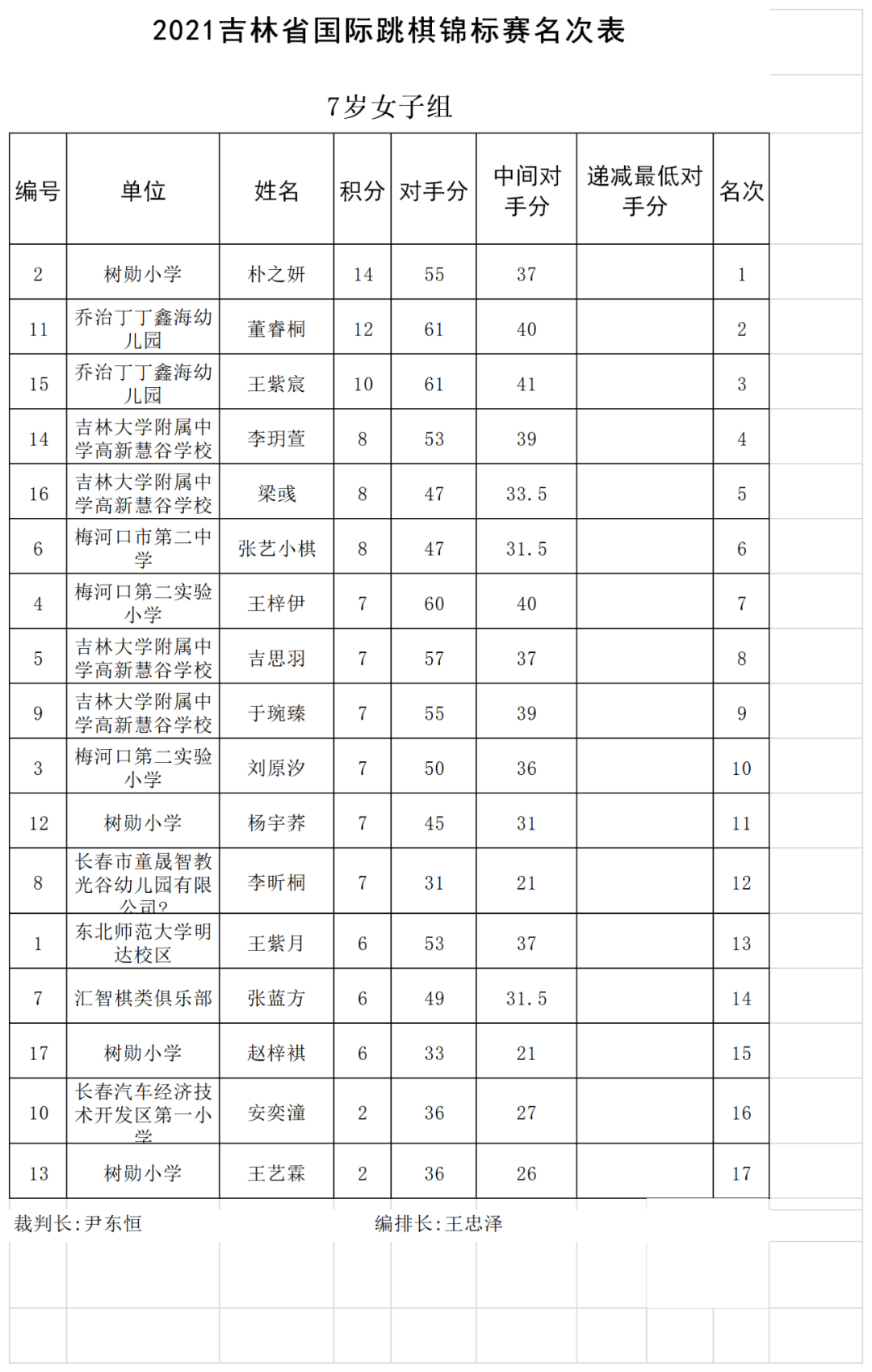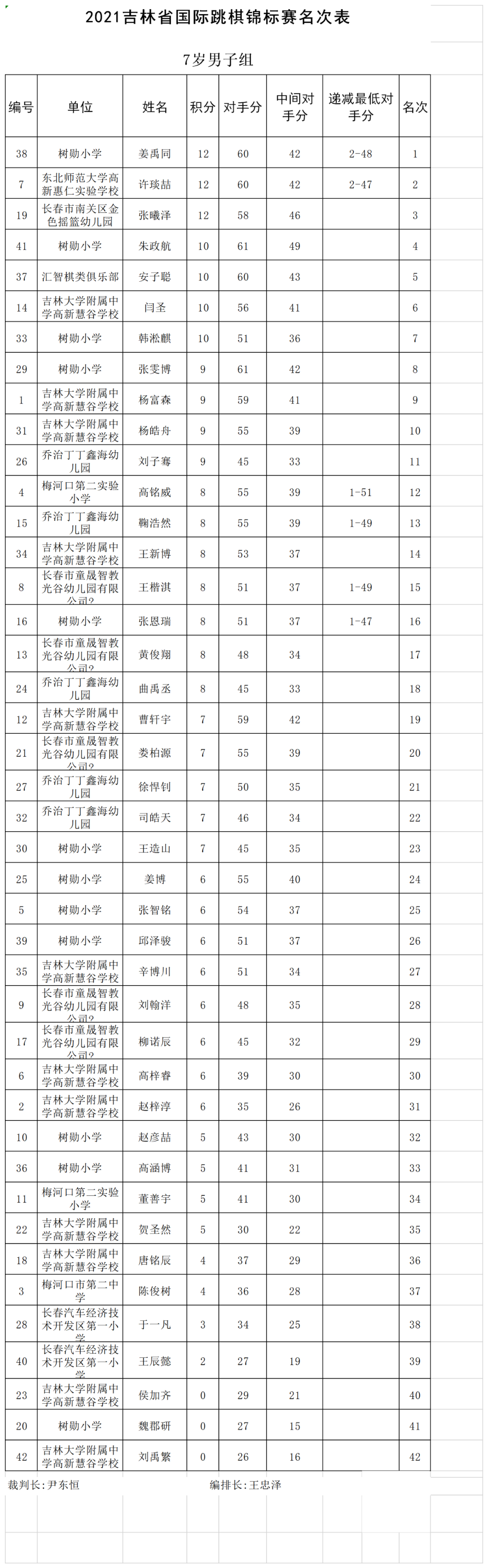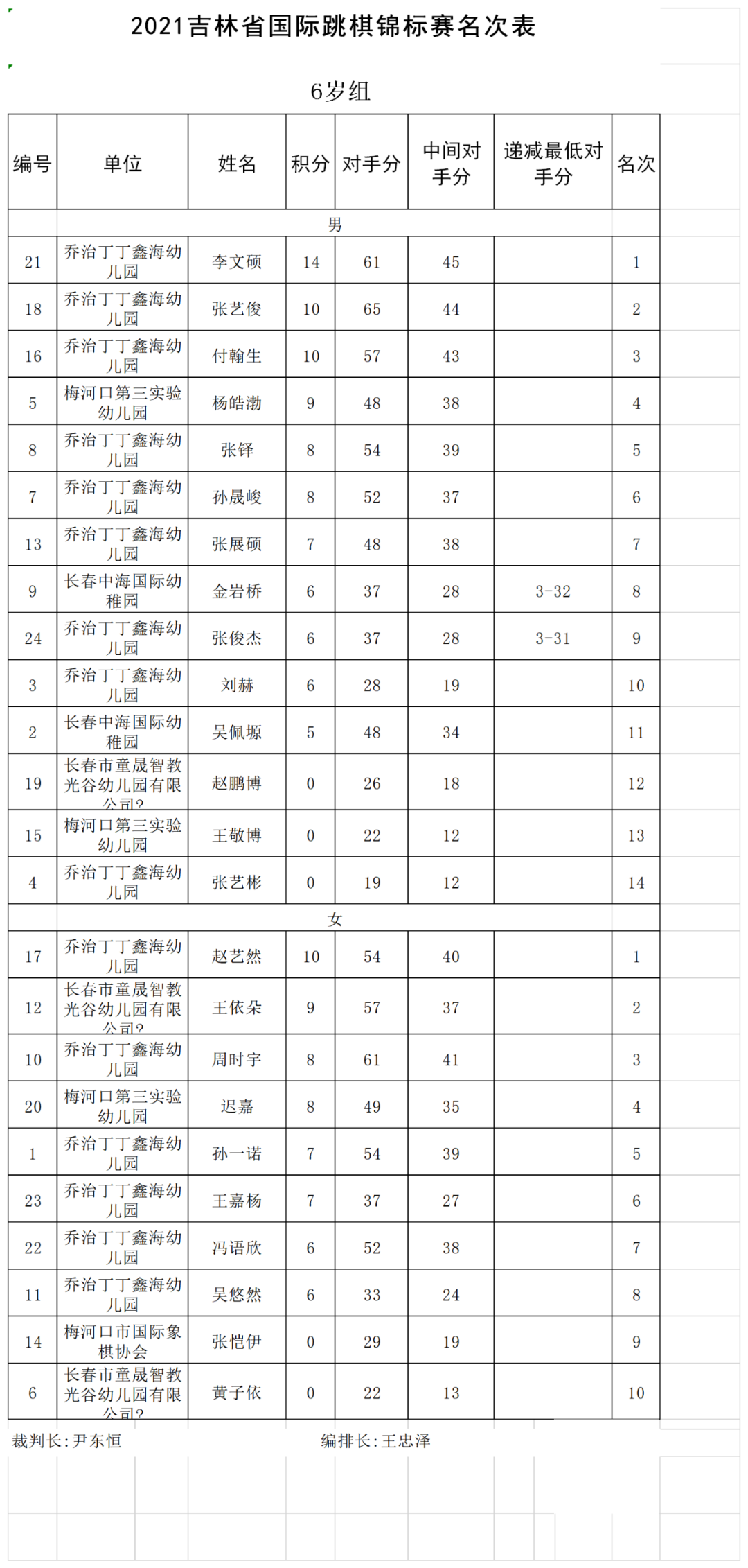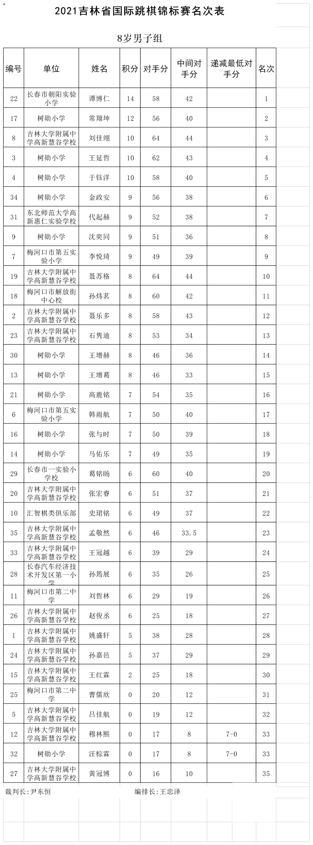 2021年吉林省国际跳棋锦标赛名次表